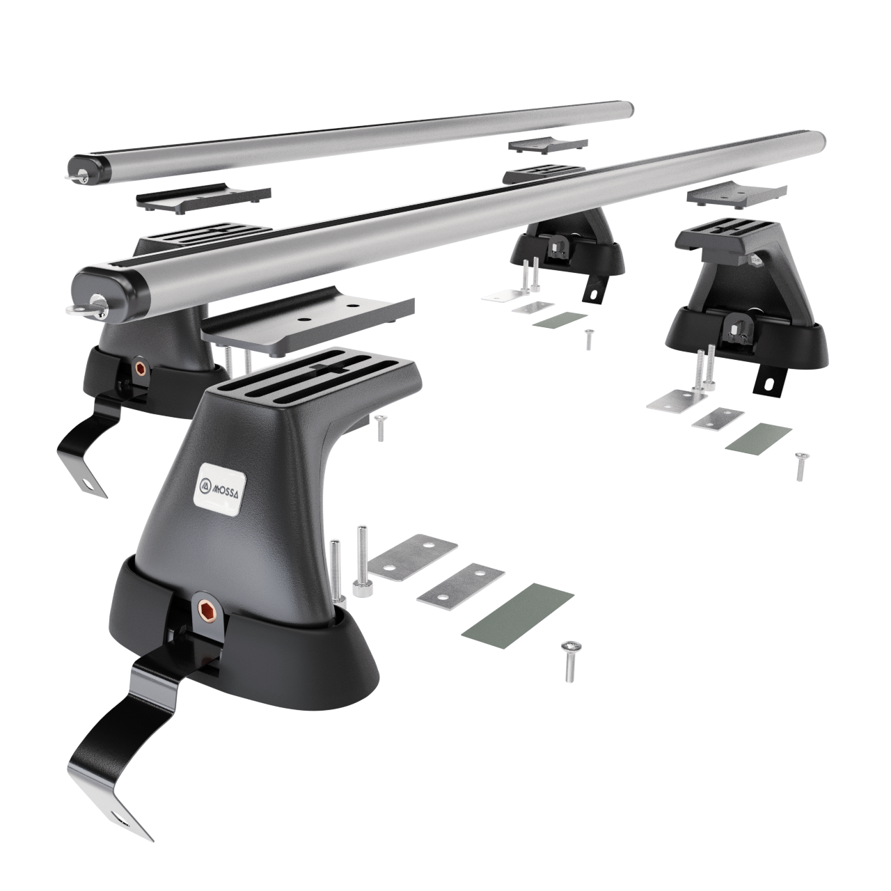 - 4 poten (houders) – voor normale daken, draagvermogen 75 kg (of volgens de aanbevelingen van de autofabrikant).