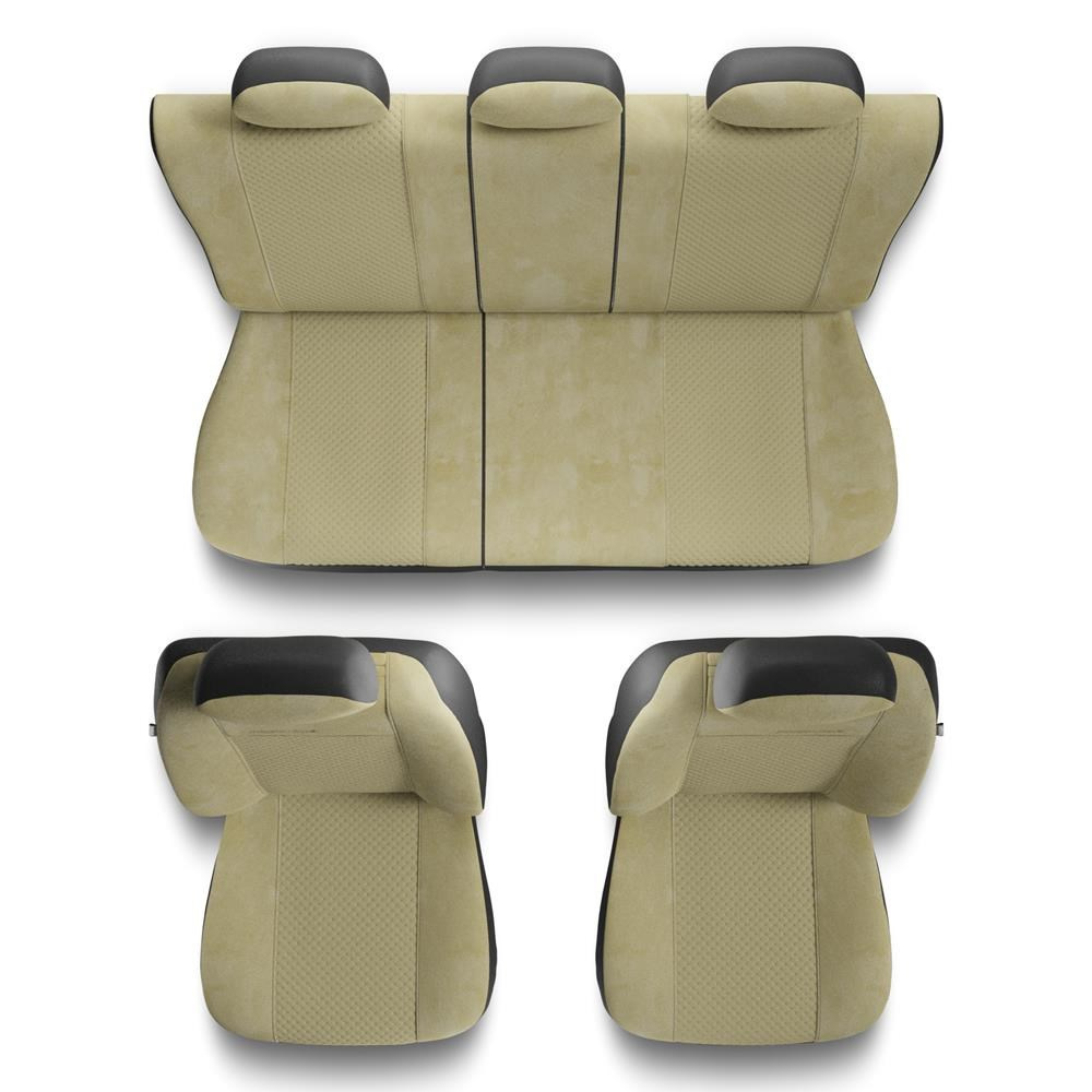 - De achterkleppen zijn voorzien van ritsen, waardoor ze geschikt zijn voor zowel volledig achterin als 2/1 gedeelde rechter- of linkerstoel.