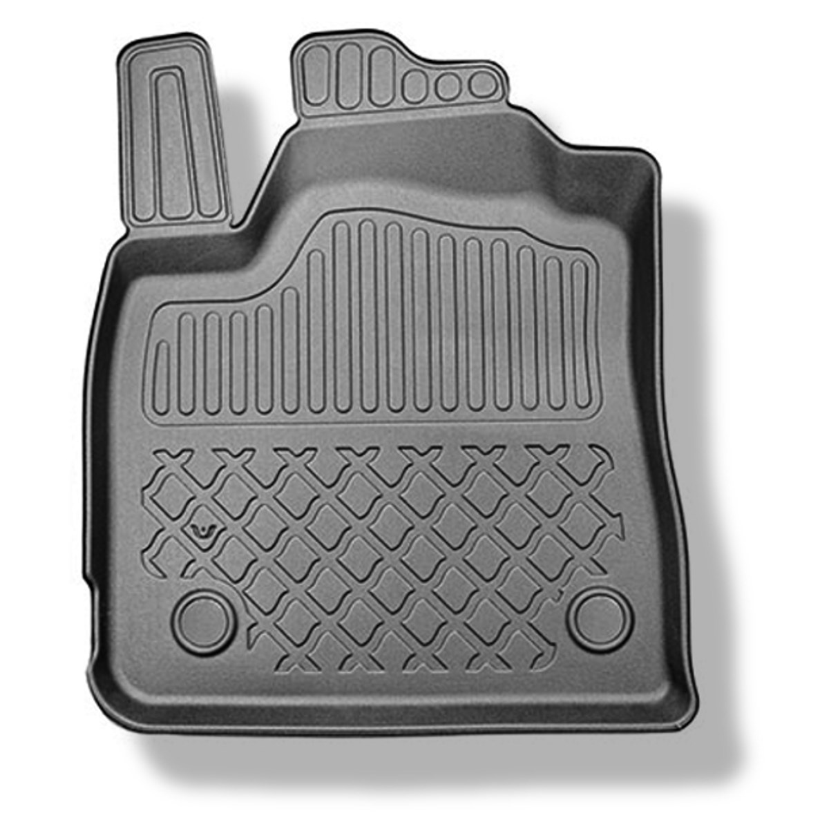 - Perfect passend op de vloer en de gebruikte bevestigingen, afhankelijk van het automodel, voorkomen dat de matten tijdens het rijden verschuiven. De productie van matten gebeurt in overeenstemming met de hoogste kwaliteitsnormen en de materialen die voor de productie ervan worden gebruikt, zijn veilig voor de gezondheid en recyclebaar. De matten zijn waterdicht en gemakkelijk schoon te maken (ze kunnen onder stromend water worden schoongemaakt, ook met een hogedrukreiniger).