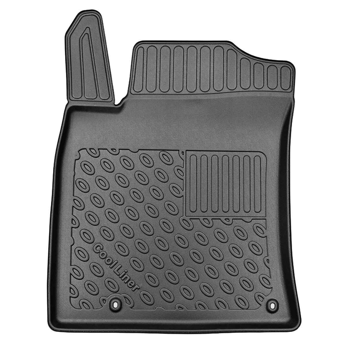 - Perfect passend op de vloer en de gebruikte bevestigingen, afhankelijk van het automodel, voorkomen dat de matten tijdens het rijden verschuiven. De productie van matten gebeurt in overeenstemming met de hoogste kwaliteitsnormen en de materialen die voor de productie ervan worden gebruikt, zijn veilig voor de gezondheid en recyclebaar. De matten zijn waterdicht en gemakkelijk schoon te maken (ze kunnen onder stromend water worden schoongemaakt, ook met een hogedrukreiniger).