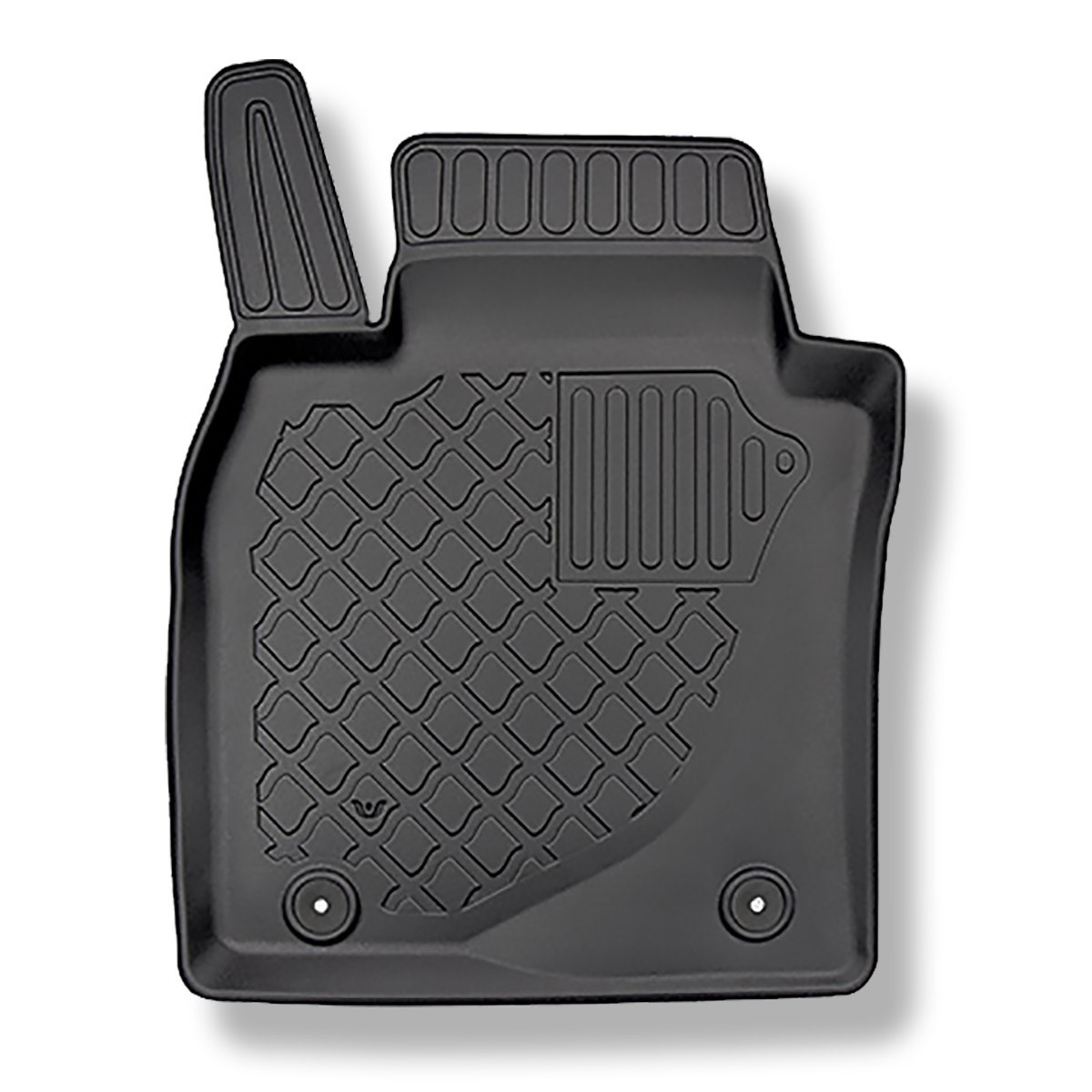 - Perfect passend op de vloer en de gebruikte bevestigingen, afhankelijk van het automodel, voorkomen dat de matten tijdens het rijden verschuiven. De productie van matten gebeurt in overeenstemming met de hoogste kwaliteitsnormen en de materialen die voor de productie ervan worden gebruikt, zijn veilig voor de gezondheid en recyclebaar. De matten zijn waterdicht en gemakkelijk schoon te maken (ze kunnen onder stromend water worden schoongemaakt, ook met een hogedrukreiniger).