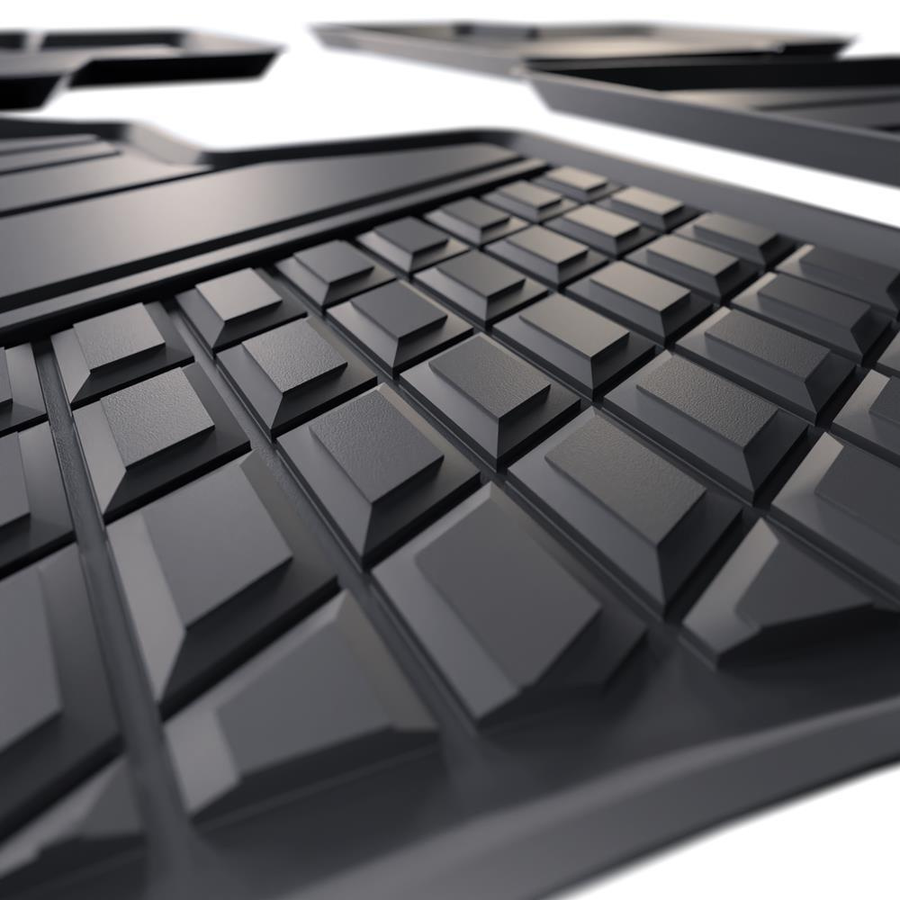 - De matten hebben een modern patroon met een matte afwerking. Elke set wordt op maat gemaakt voor een bepaald automodel en een bepaalde generatie van auto, wat 100% aanpassing aan de voertuigvloer garandeert. De set bevat ook stoppers, als deze in een bepaald automodel aanwezig zijn.