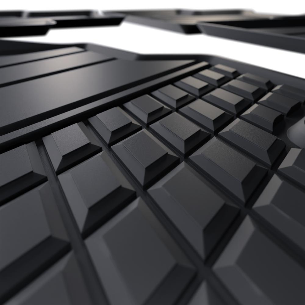 - Perfect passend op de vloer en de gebruikte bevestigingen, afhankelijk van het automodel, voorkomen dat de matten tijdens het rijden verschuiven. De productie van matten gebeurt in overeenstemming met de hoogste kwaliteitsnormen en de materialen die voor de productie ervan worden gebruikt, zijn veilig voor de gezondheid en recyclebaar. De matten zijn waterdicht en gemakkelijk schoon te maken (ze kunnen onder stromend water worden schoongemaakt, ook met een hogedrukreiniger).