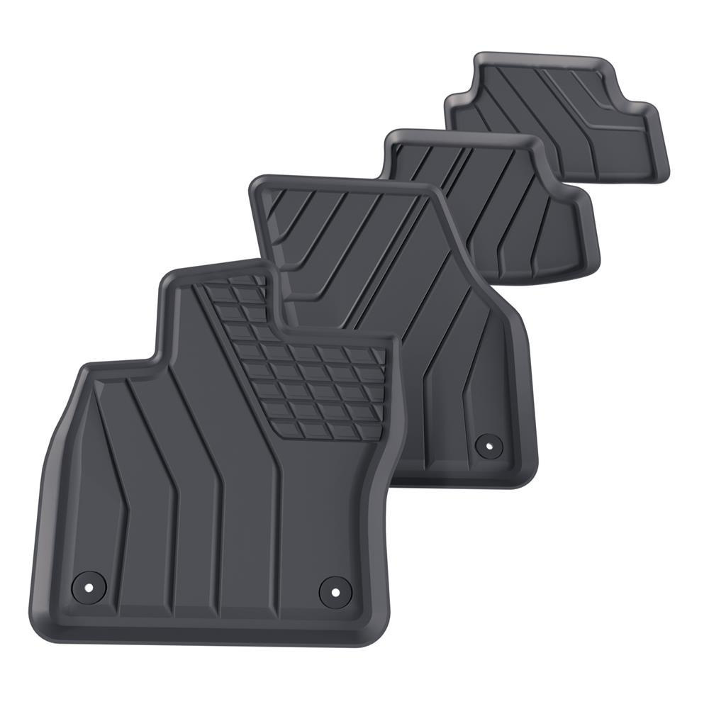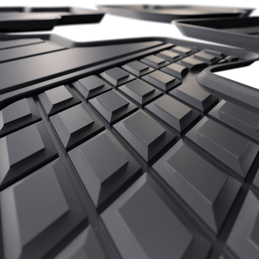 - De matten hebben een modern patroon met een matte afwerking. Elke set wordt op maat gemaakt voor een bepaald automodel en een bepaalde generatie van auto, wat 100% aanpassing aan de voertuigvloer garandeert. De set bevat ook stoppers, als deze in een bepaald automodel aanwezig zijn.
