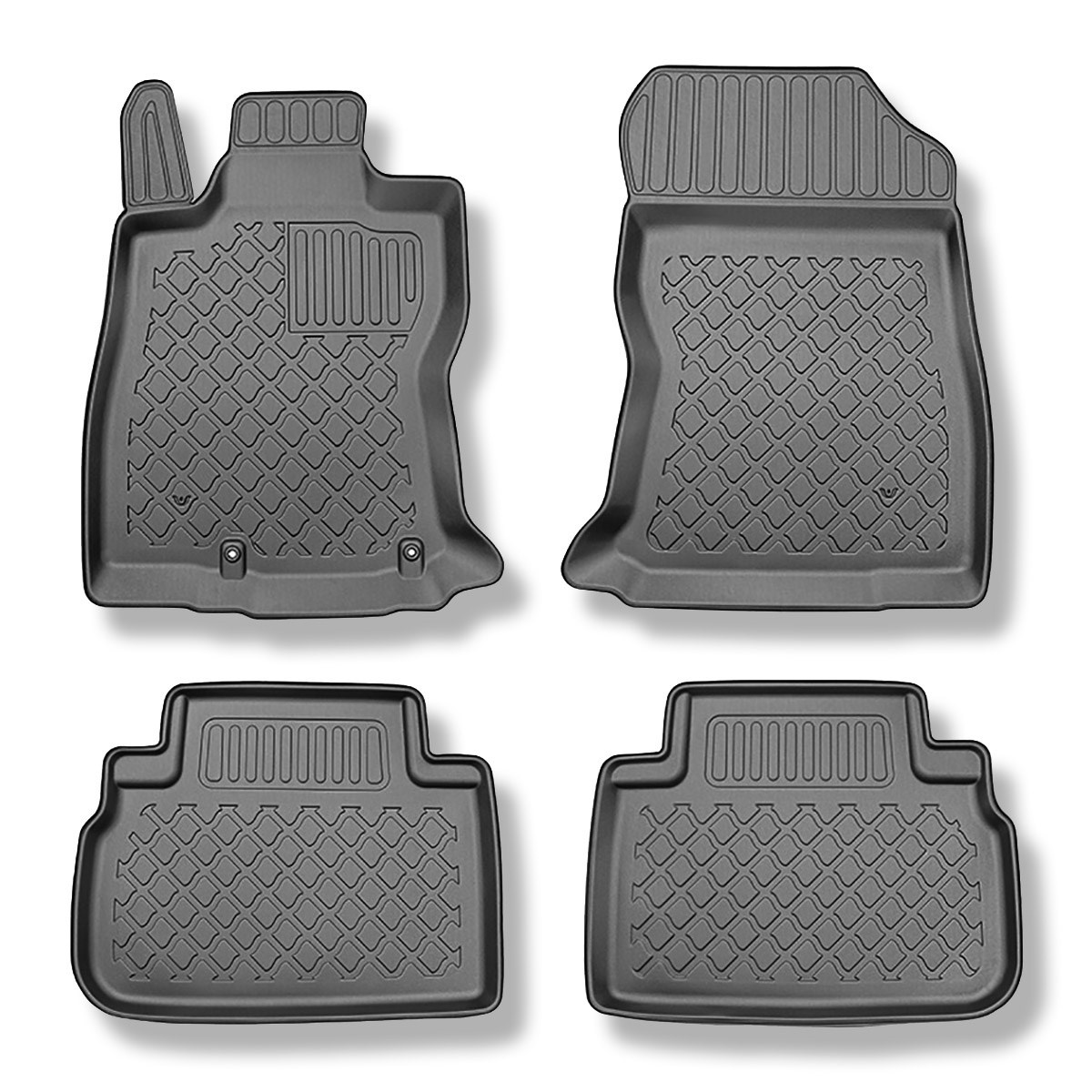 - Perfect passend op de vloer en de gebruikte bevestigingen, afhankelijk van het automodel, voorkomen dat de matten tijdens het rijden verschuiven. De productie van matten gebeurt in overeenstemming met de hoogste kwaliteitsnormen en de materialen die voor de productie ervan worden gebruikt, zijn veilig voor de gezondheid en recyclebaar. De matten zijn waterdicht en gemakkelijk schoon te maken (ze kunnen onder stromend water worden schoongemaakt, ook met een hogedrukreiniger).